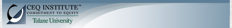The CEQ Assessment provides the first comprehensive analysis of how taxes and social spending (including indirect subsidies and taxes, and education and health expenditures) affect income inequality and poverty in a country. The assessments are comparable across countries and over time. The country-level studies examine the distributional effects of individual programs and policy measures—and the net effect of each country's mix of policies and programs. The results will give policy makers, multilateral institutions, and nongovernmental groups the data and analysis necessary to determine what changes in tax and spending policies will lead to greater equality and poverty reduction.